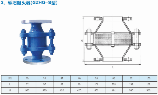 阻火器是用來阻止易燃氣體、液體的火焰蔓延和防止回火而引起爆炸的安全裝置。通常使用在輸送或排入易燃易爆氣體的儲罐或者管線上。如火炬、加熱燃燒系統(tǒng)、石油氣體回收系統(tǒng)或其他易燃氣體系統(tǒng)。